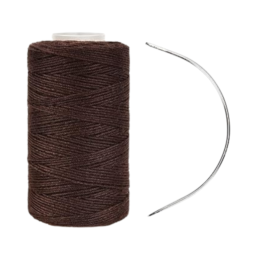 The Black, Brown, and Blonde Thread and C Needle sold at Tilly Lash is the essential kit for professional application and secure maintenance of weft (track) and braidless weave hair extensions.